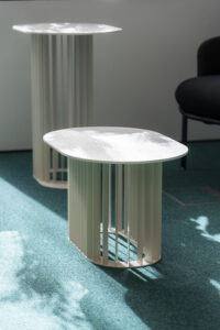 Stoliki kawowe w kolorze białym – minimalistyczne i lekkie wizualnie, dopasowane do aranżacji przestrzeni wspólnej.